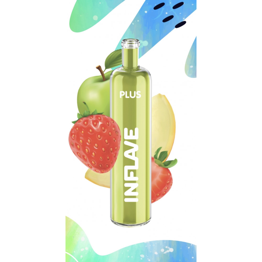 Электронная сигарета Inflave Plus 2200 затяжек Дыня Яблоко Клубника, нежный вкус спелой дыни со свежестью зелёного яблока и клубники.