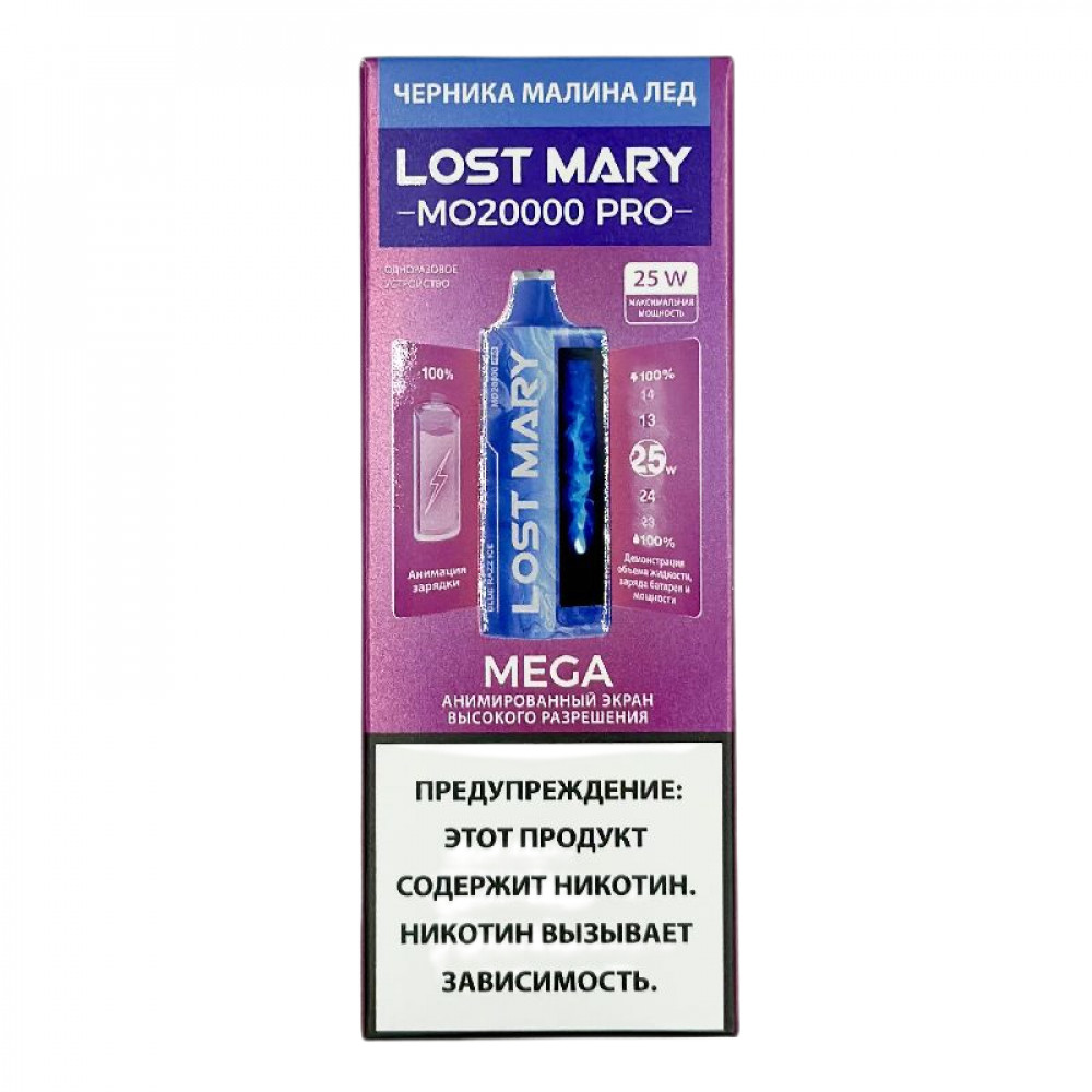 | Аромат/вкусЧерника Малина Лёд | БрендLOST MARY | ВидLOST MARY MO 20000 Pro |